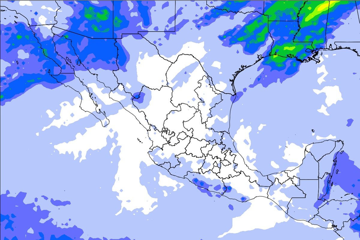 • Lluvias aisladas (0.1 a 5 mm) en Michoacán, Chiapas y Quintana Roo, asociadas al ingreso de humedad del océano Pacífico y el mar Caribe.