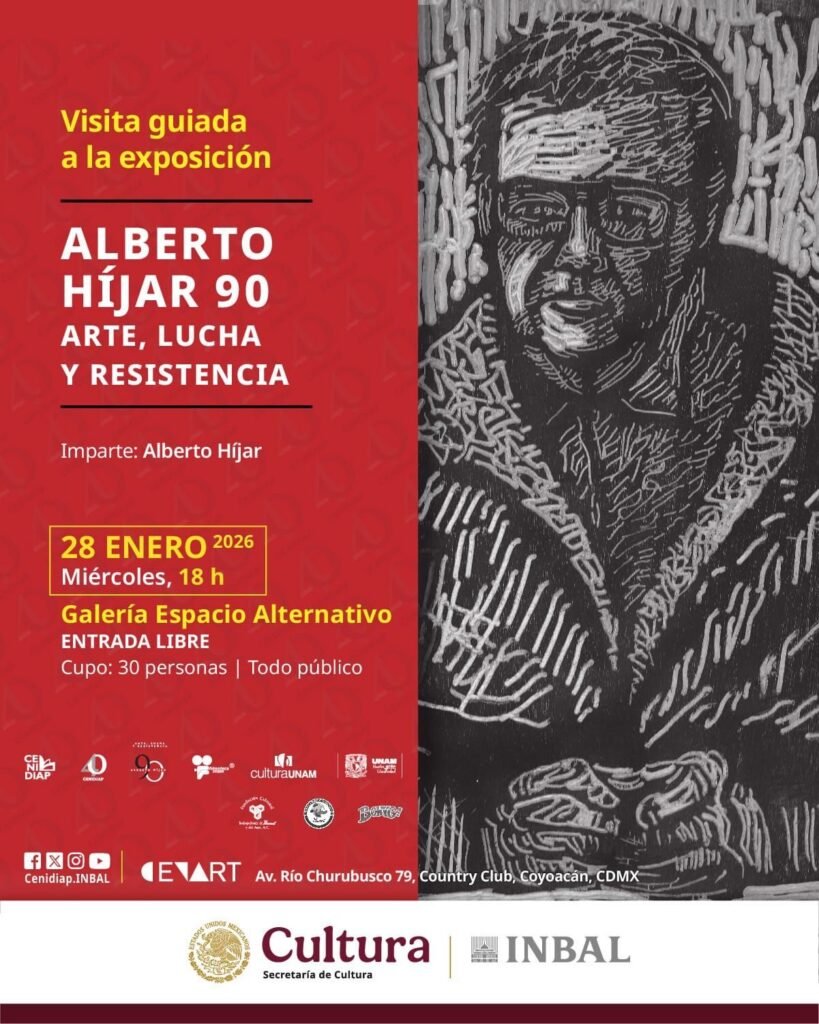 Las actividades, organizadas por el Centro Nacional de Investigación, Documentación e Información de Artes Plásticas (CENIDIAP), adscrito a la Subdirección General de Educación e Investigación Artísticas del Instituto Nacional de Bellas Artes y Literatura, tendrán lugar en la Galería Espacio Alternativo del Centro Nacional de las Artes. El ciclo inicia el 28 de enero a las 18 horas, cuando el propio Alberto Híjar encabece una visita guiada durante la Noche de Museos, en un ejercicio poco común que combina la lectura crítica de las obras con el testimonio directo de quien ha sido protagonista y testigo de buena parte de los debates culturales del país desde la segunda mitad del siglo XX.