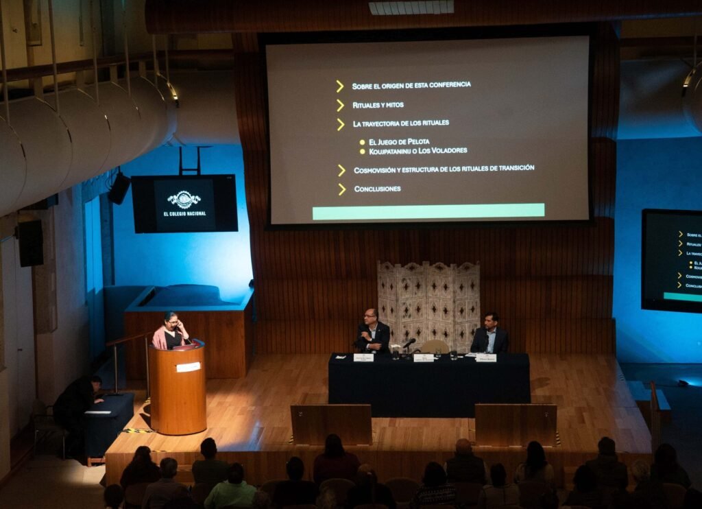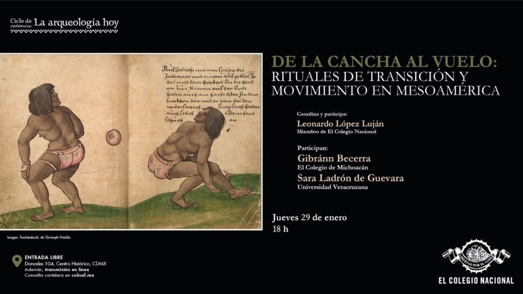 En un análisis que redefine las interpretaciones clásicas de dos de los rituales más emblemáticos de la antigua Mesoamérica, los investigadores Sara Ladrón de Guevara y Gibránn Becerra presentaron los resultados de su estudio, recientemente publicado en la revista Ancient Mesoamerica de Cambridge University Press, donde exploran la íntima relación entre la ceremonia de los Voladores y el Juego de Pelota como expresiones complementarias de la cosmovisión indígena mesoamericana. La conferencia “De la cancha al vuelo: rituales de transición y movimiento en Mesoamérica” se realizó en el marco del ciclo La arqueología hoy, coordinado por el arqueólogo Leonardo López Luján, miembro de El Colegio Nacional, y se convirtió en la plataforma para publicar y discutir públicamente las implicaciones de esta investigación académica.