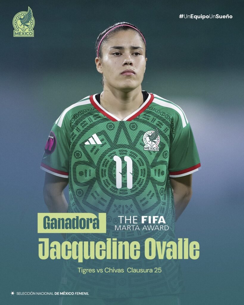 Con esta conquista, Ovalle no solo suma un trofeo más a su palmarés, sino que se convierte en la primera mexicana en ganar el Premio Marta de la FIFA, un reconocimiento que en su corta historia había sido entregado apenas una edición anterior y que lleva el nombre de la legendaria Marta Vieira da Silva, icono del fútbol femenino.