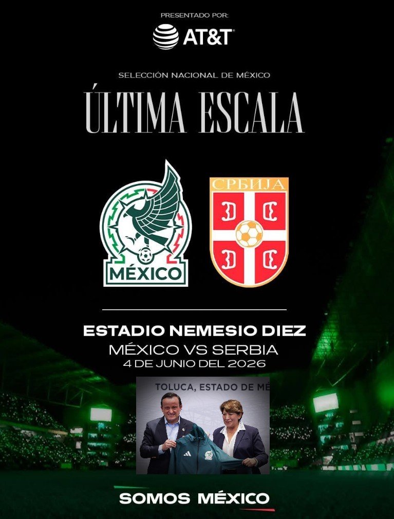 Anunciamos en conjunto la @FMF y Gobierno del #EdoMex que el partido de México vs. Serbia, la #ÚltimaEscala en la preparación previa a la @FIFAWorldCup 2026, se celebrará el 4 de junio en el Estadio Nemesio Diez.