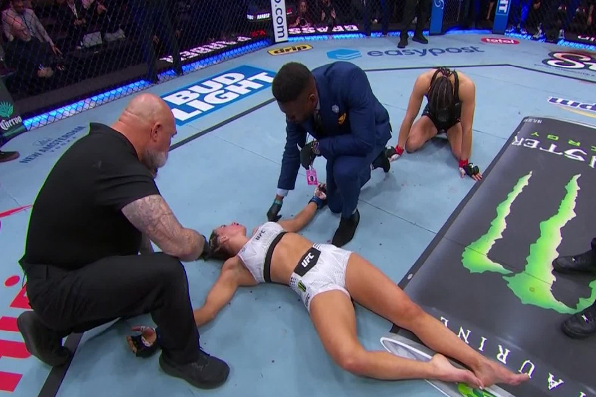 Lo más impactante ocurrió después: tras rendirse, Maycee Barber se desvaneció en la lona, permaneciendo varios minutos sin incorporarse mientras recuperaba el aliento.