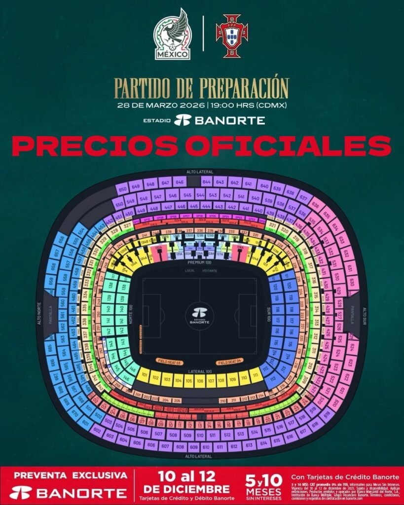 La inauguración del Estadio Banorte en la Ciudad de México ya comenzó a generar un fuerte impacto en la afición y en el mercado de espectáculos deportivos, luego de que se revelaran los precios oficiales de los boletos para el partido de preparación entre la Selección Nacional de México y la Selección de Portugal, programado para el sábado 28 de marzo de 2026. El encuentro, que marcará la apertura oficial del nuevo recinto, se perfila como uno de los eventos futbolísticos más costosos y exclusivos celebrados en el país en años recientes.