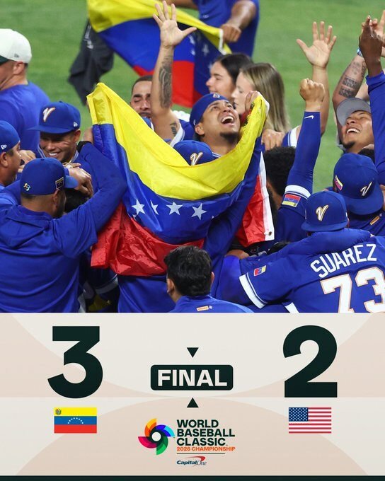 En una noche cargada de simbolismo deportivo y político, Venezuela se proclamó campeón del Clásico Mundial de Béisbol 2026 tras derrotar 3-2 a Estados Unidos en la final disputada en Miami, logrando así el primer título de su historia en este torneo y consolidando una victoria que trasciende el terreno de juego.
