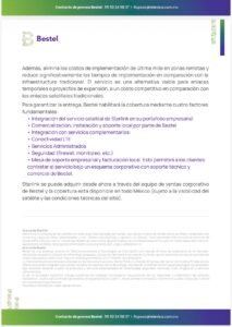 La colaboración está enfocada en garantizar la conectividad de las empresas incluso en lugares que carezcan de infraestructura terrestre. Bestel señaló que el acuerdo “amplía su portafolio de conectividad empresarial al ofrecer la tecnología satelital de Starlink y fortalece su propuesta de valor como integrador de soluciones de conectividad híbrida (fibra, LTE, microondas y satélite)”.