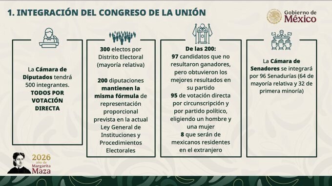 La presidenta de México, Claudia Sheinbaum, presentó este miércoles su iniciativa de Reforma Electoral, un paquete de cambios que, aseguró, responde a una demanda ciudadana para abaratar el costo del sistema electoral, eliminar las listas plurinominales definidas por las dirigencias partidistas y fortalecer los mecanismos de participación democrática. El proyecto será enviado el próximo lunes al Congreso de la Unión, aunque aún no se ha determinado si será turnado primero a la Cámara de Diputados o al Senado.
