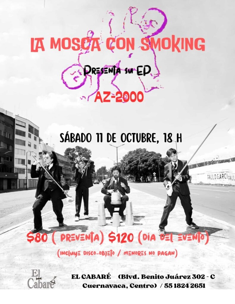 La agrupación La Mosca con Smoking confirmó el lanzamiento de su primer EP, AZ-2000, y anunció que las canciones estarán disponibles en plataformas digitales a partir del concierto de presentación en Cuernavaca.
