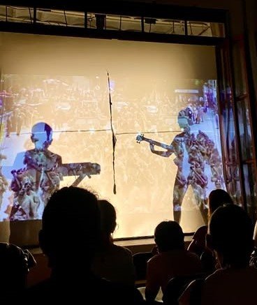 Zumbidos de papel está concebido como un concierto escénico-literario en el que cada canción funciona como una página sonora. En escena, la música se articula con narración, teatro de sombras, proyecciones en vivo, danza y elementos visuales que transforman el escenario en un espacio narrativo. La lectura deja de ser un acto silencioso y se convierte en una experiencia multisensorial, donde las historias se escuchan, se miran y se sienten, invitando al público a imaginar que forma parte de una historia colectiva en constante movimiento.
