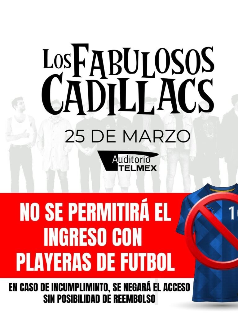 A unas horas del esperado concierto de Los Fabulosos Cadillacs en Auditorio Telmex, una medida poco habitual ha generado desconcierto entre los asistentes: no se permitirá el ingreso a personas que porten playeras de futbol, bajo ninguna circunstancia y sin derecho a reembolso en caso de incumplimiento.