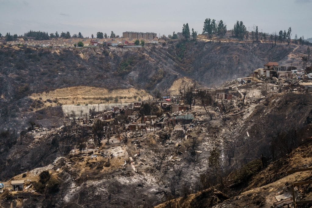 Según el Servicio Nacional de Prevención y Respuesta ante Desastres (Senapred) solo en la citada región de la costa han ardido ya cerca de 8,500 hectáreas, incluidas decenas de campamentos irregulares (tomas) que se descolgaban desde los cerros próximos al parque natural del Lago Peñuelas.