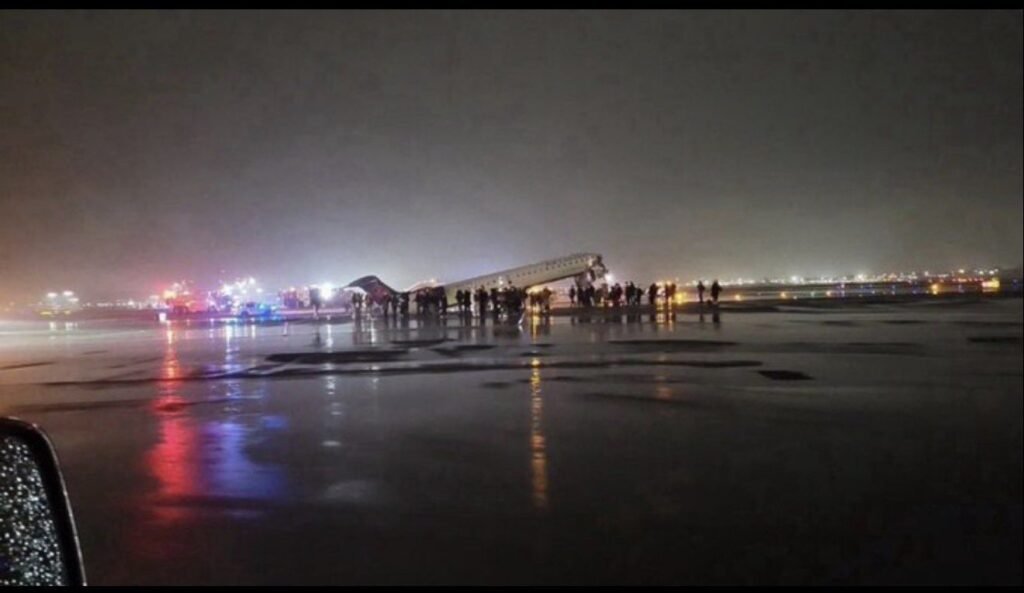 De acuerdo con información confirmada por autoridades estadounidenses y reportes de agencias internacionales, la aeronave —un Bombardier CRJ-900 operado por Air Canada Express— impactó contra un vehículo de rescate perteneciente a la Autoridad Portuaria mientras aterrizaba tras un vuelo procedente de Montreal. El choque ocurrió alrededor de las 23:38 horas en la pista 4 del aeropuerto, lo que derivó en un despliegue inmediato de cuerpos de emergencia y en el cierre temporal de la terminal aérea.