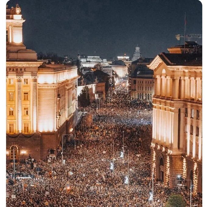 Desde la noche del miércoles, decenas de miles de búlgaros, según estimaciones de medios basadas en imágenes de drones, se lanzaron a las calles de Sofía, concentrándose en la plaza central que une los edificios del Parlamento, el Gobierno y la Presidencia, mientras proyectaban con láser los mensajes “Dimisión”, “Fuera la mafia” y “Por unas elecciones justas” sobre las fachadas de las instituciones estatales. Organizaciones civiles y estudiantes universitarios lideraron las protestas, que en la capital habrían superado los 100 000 participantes y, según algunos informes, alcanzaron hasta 150 000. Más de 25 ciudades de todo el país, desde Plovdiv hasta Varna, Veliko Tarnovo y Razgrad, vivieron movilizaciones de diversa magnitud, extendiendo el movimiento a nivel nacional. También hubo manifestaciones de búlgaros en el extranjero, con concentraciones en ciudades como Bruselas, Londres, Berlín, Viena, Zúrich y Nueva York.