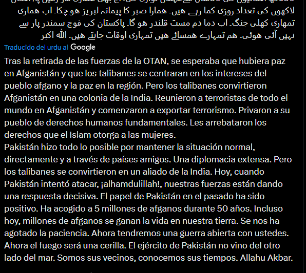 La declaración de “guerra abierta” por parte de Pakistán abre un capítulo peligroso en un conflicto que parecía controlado dentro de parámetros fronterizos localizados. Ahora, con bombardeos que han alcanzado áreas urbanas y con las dos naciones enfrentándose directamente, los riesgos de un conflicto prolongado y con implicaciones internacionales aumentan, poniendo a prueba la frágil estabilidad del sur de Asia.