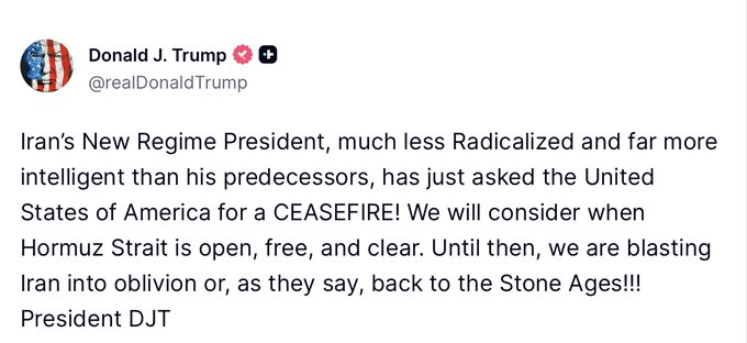 🇺🇸🇮🇷 | AHORA — Donald Trump dice que se retirarán de Irán en dos o tres semanas y que los europeos que no quisieron involucrarse se tendrán que hacer cargo del Estrecho de Ormuz.