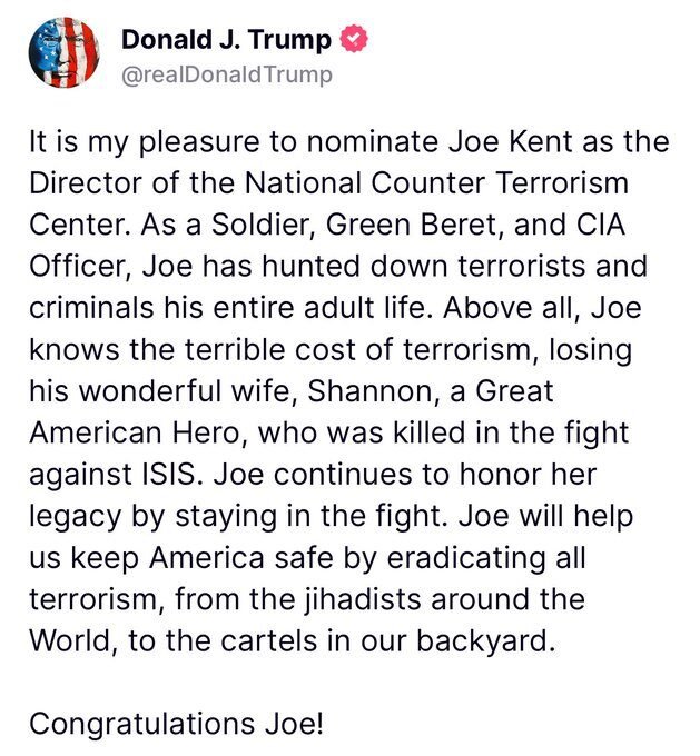 — Joe Kent (@joekent16jan19) March 17, 2026
