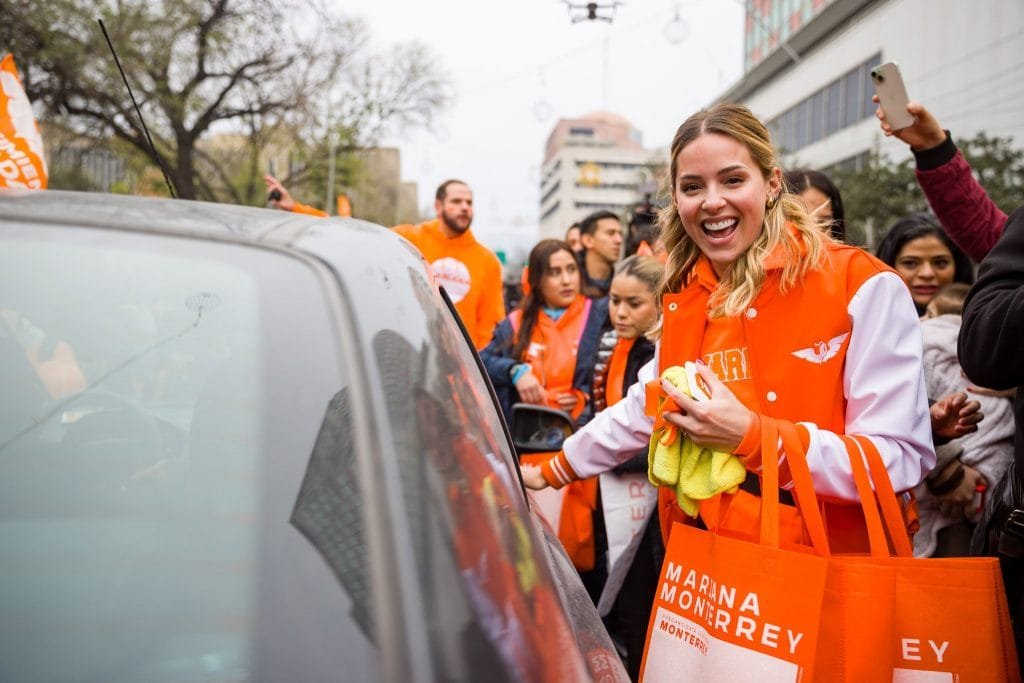 La tarde de este domingo, Mariana Rodríguez Cantú, precandidata de Movimiento Ciudadano a la alcaldía de Monterrey, llevó a cabo su cierre de precampaña, en la Plaza Zaragoza, frente al palacio municipal.