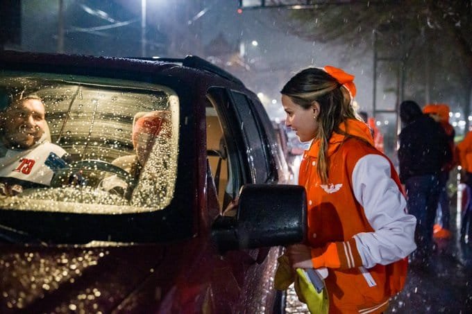 Aunado a ello, también destacó una fila de autos que se formó desde muy temprano para el pegoteo de calcas, entre los que se encontraba su esposo, el gobernador de Nuevo León, Samuel García, a quien también le pusieron su calca matona.