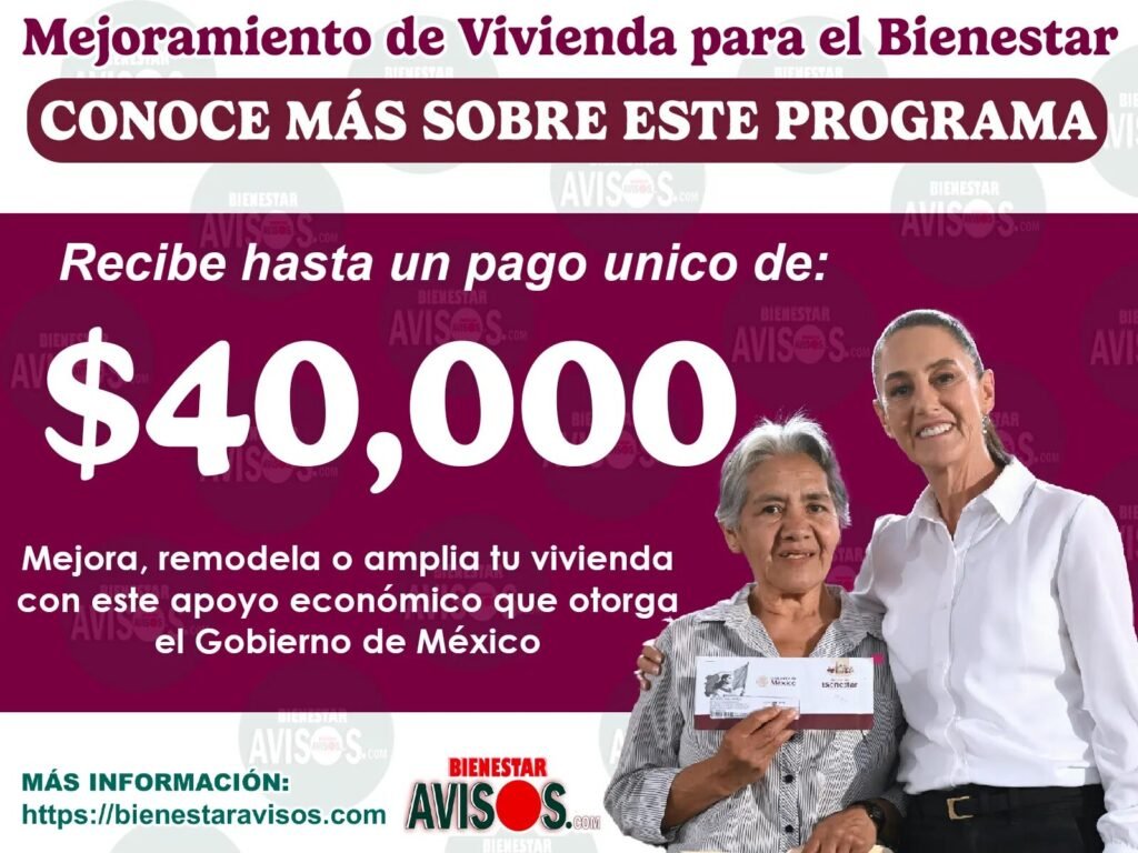 En el contexto de una creciente demanda social por soluciones habitacionales dignas, el Gobierno federal ha puesto en marcha el Programa de Mejoramiento de Vivienda para el Bienestar 2025, que ofrece un apoyo directo de $40,000 pesos por familia para ampliar, reparar o mejorar las condiciones de las viviendas. El impulso es claro: no se trata de un crédito que deba reintegrarse, sino de un subsidio puro destinado a quienes —por diversas condiciones estructurales— no pueden acceder a financiamientos tradicionales. (Fuente: Apoyos México)