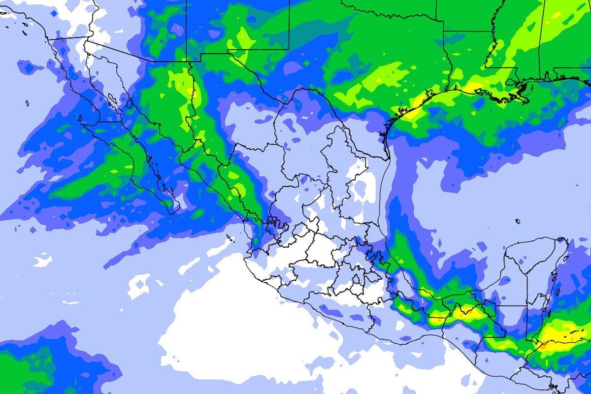 - Lluvias muy fuertes: Baja California Sur, Sonora, Sinaloa y Chihuahua.