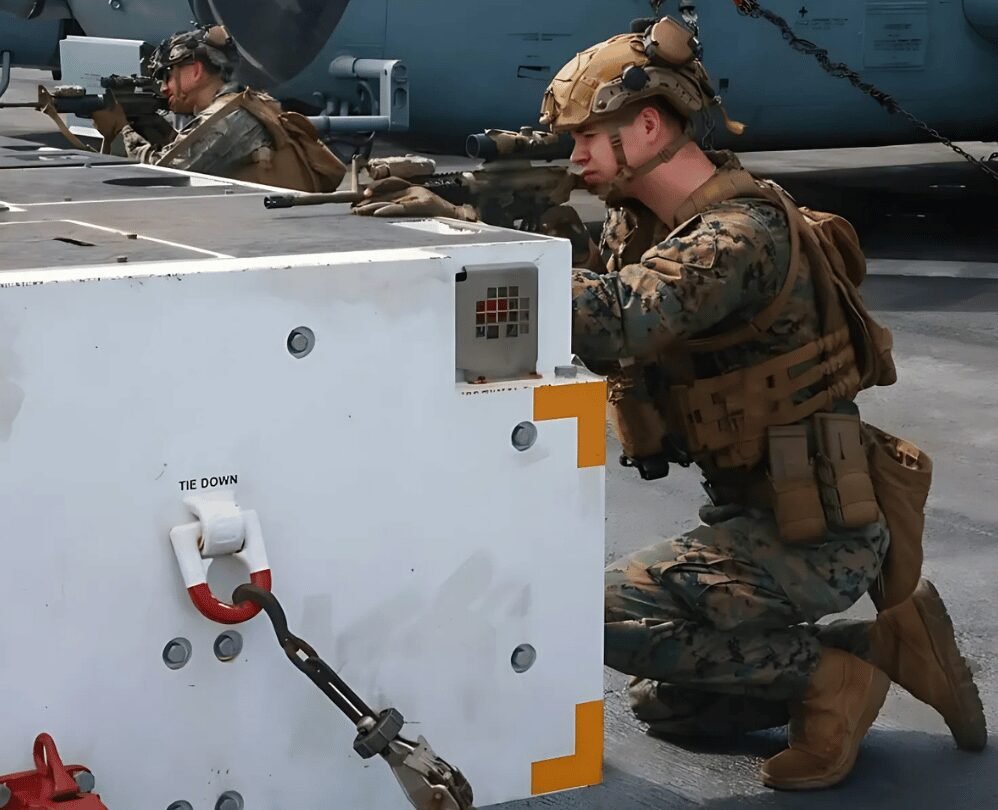 En las imágenes aparecen soldados realizando prácticas con fusiles, revisando maquinaria y efectuando maniobras en la cubierta del navío USS Iwo Jima, un buque de ataque anfibio diseñado para transportar aeronaves y vehículos de asalto.