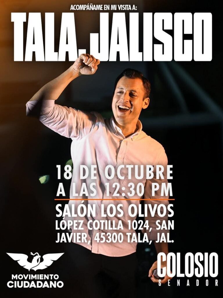 La gira continuará este sábado con una visita programada a Tala, Jalisco, a las 12:30 del día, donde Colosio se reunirá con ciudadanas y ciudadanos que apoyan la construcción de un nuevo país y que miran en la fuerza naranja una opción fresca que hace frente a las viejas políticas llevadas a cabo por los partidos tradicionales, y que miran en la organización local, en la política local el camino para transformar el país.
