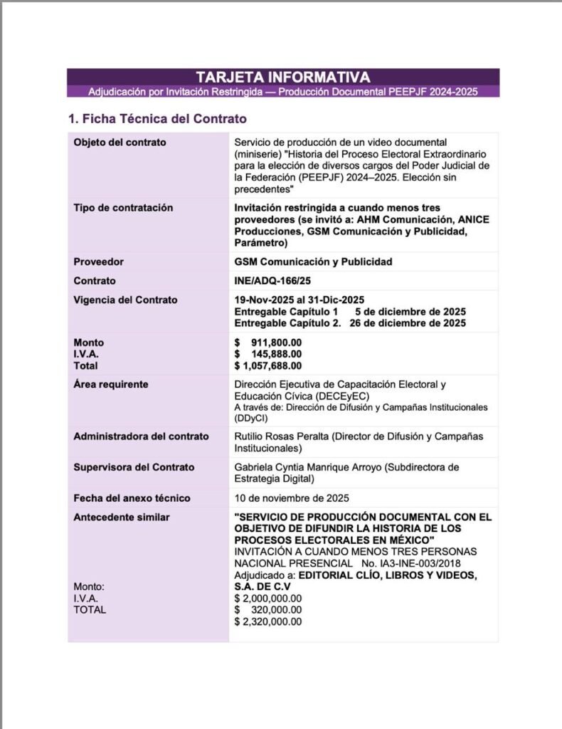 El Instituto Nacional Electoral (INE) se encuentra en el centro de una controversia pública después de anunciar la realización de una miniserie documental sobre la Elección Judicial de 2025, un proceso inédito en la historia política mexicana que buscó involucrar a la ciudadanía en la elección de jueces, magistrados y ministros del Poder Judicial de la Federación. Sin embargo, lo que prometía ser un ejercicio de transparencia informativa ha encendido críticas por la forma en que se adjudicó la producción de dicho material y por los vínculos del productor seleccionado.