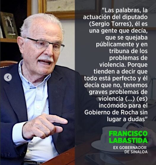 Labastida, quien fue candidato presidencial del PRI en el año 2000, abundó sobre el perfil del legislador agredido en una entrevista con la periodista Carmen Aristegui, en la que destacó que Sergio Torres Félix “tiene fama de hombre honesto y valiente”, cualidades que, a su juicio, explican tanto su carrera política como los riesgos que hoy enfrenta. Recordó que Torres fue líder del sindicato de trabajadores del municipio de Culiacán y posteriormente presidente municipal, dos posiciones que le dieron visibilidad y poder, pero también enemigos.