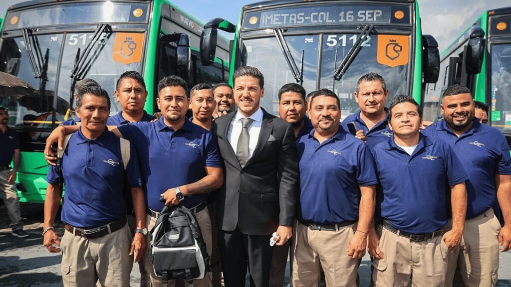 “Tenemos 4 mil nuevos camiones, orgullosamente Volvo, Hecho en Nuevo León, con clima, internet, seguridad, botón de pánico y además Fuerza Civil de manera estratégica yendo a la ruta donde puede haber denuncias o delitos”, señaló García Sepúlveda.