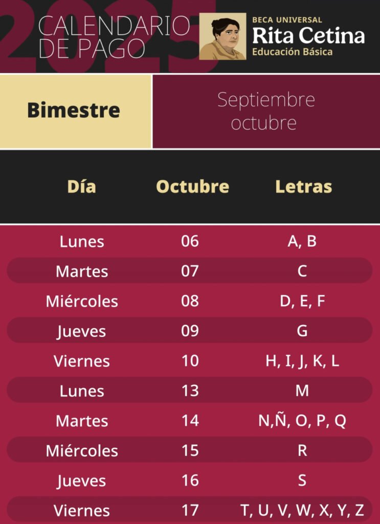La Coordinación Nacional de Becas para el Bienestar Benito Juárez dio a conocer el calendario oficial de pagos de la beca Rita Cetina, dirigido exclusivamente a alumnos de secundaria que ya cuentan con su tarjeta del Banco del Bienestar.
