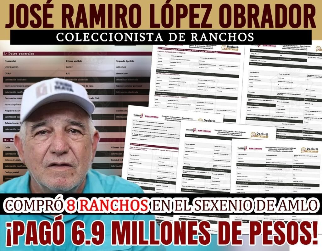 El secretario de Gobierno de Tabasco, José Ramiro López Obrador, rompió el silencio luego de que se diera a conocer la adquisición de 13 ranchos, ocho de los cuales habrían sido comprados durante el sexenio de su hermano, el expresidente Andrés Manuel López Obrador. En entrevista, el funcionario aseguró que todas sus propiedades están debidamente declaradas y que su patrimonio es producto de años de esfuerzo y sacrificio.