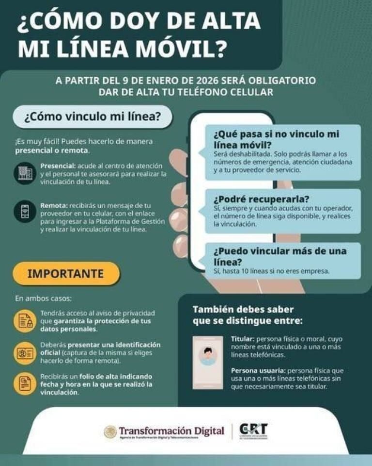 El modelo establece que todas las líneas deben vincularse a la Clave Única de Registro de Población (CURP), y la advertencia de la Comisión Reguladora de Telecomunicaciones es clara: no habrá prórroga. Aquellas líneas que no cumplan con el requisito serán suspendidas a partir del 1 de julio. En términos prácticos, esto implica que los usuarios perderán la posibilidad de realizar llamadas, enviar mensajes o utilizar datos móviles, quedando habilitadas únicamente las llamadas de emergencia.