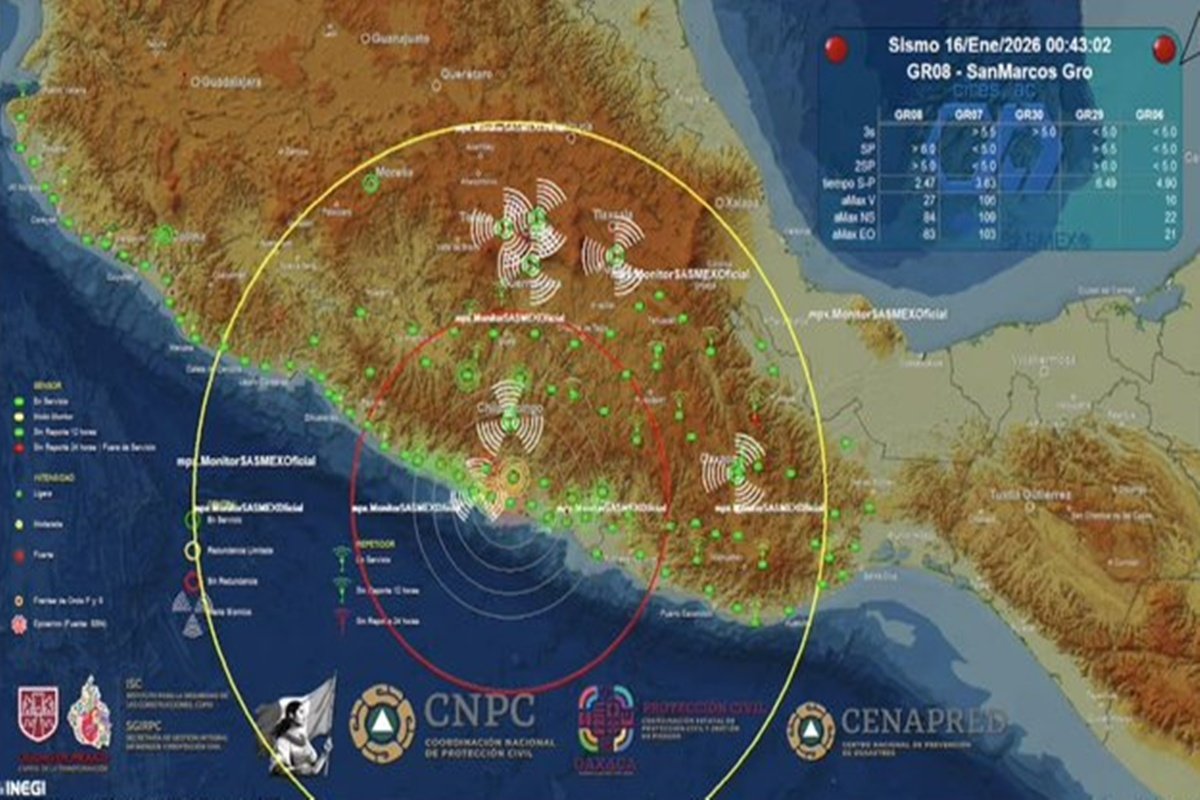 México inició 2026 con actividad sísmica relevante; durante la madrugada del 16 de enero, se registraron dos sismos con epicentro en San Marcos, Guerrero: uno de magnitud 6.5, que dejó dos personas fallecidas, y otro de 5.3 grados