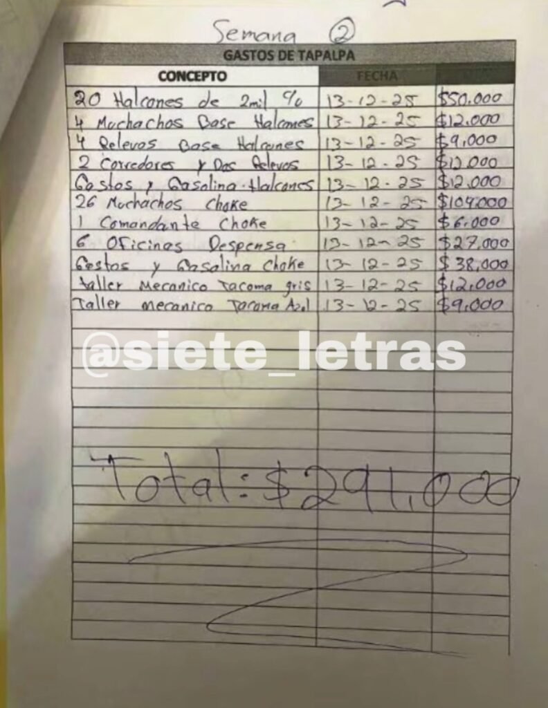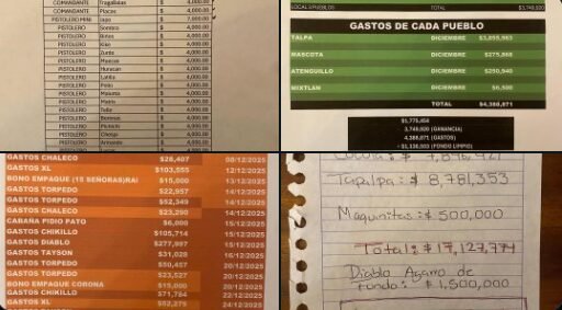 Uno de los apartados más reveladores corresponde a diciembre de 2025. Según los documentos, en el municipio de Tapalpa y zonas aledañas, el CJNG reportó ingresos por 8 millones 781 mil 353 pesos en ese solo mes. La cifra ilustra la dimensión económica de la organización en una región específica y permite dimensionar el flujo de recursos que sostiene su estructura territorial. El desglose incluye ventas de cristal y otras drogas sintéticas, así como montos asociados al control de puntos de distribución.