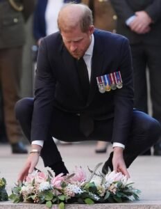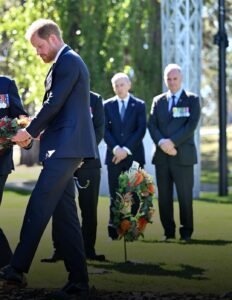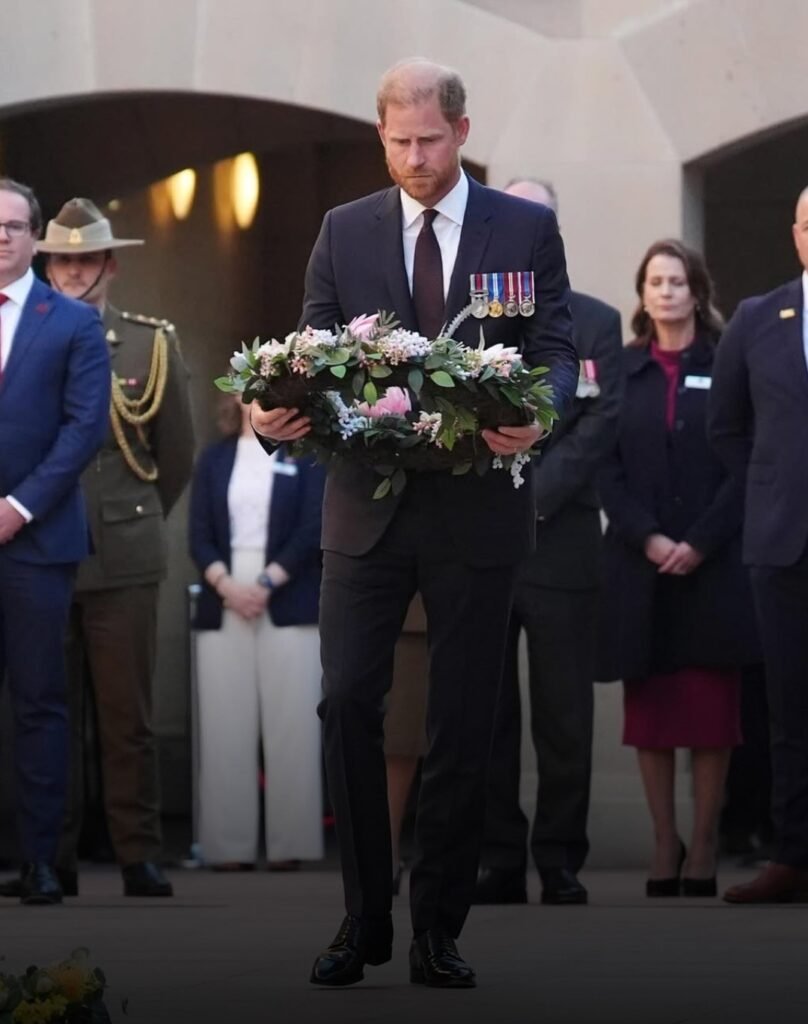 En este sitio, vestido con traje oscuro y portando las medallas de servicio correspondientes a sus dos despliegues en Afganistán con el Ejército Británico, el príncipe depositó una corona de flores y participó en una ceremonia de humo, un rito tradicional enfocado en el respeto y la solemnidad.
