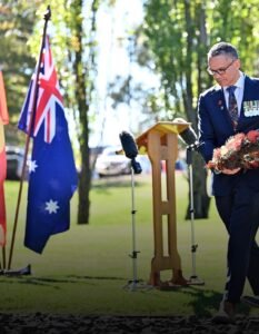 A su llegada a las instalaciones del monumento, el duque de Sussex fue recibido con una ceremonia de bienvenida tradicional indígena dirigida por el representante Michael Bell. Posteriormente, se trasladó al pabellón escultórico denominado “For Our Country”, un espacio dedicado a reconocer el servicio militar y el sacrificio de los pueblos aborígenes e isleños del Estrecho de Torres.